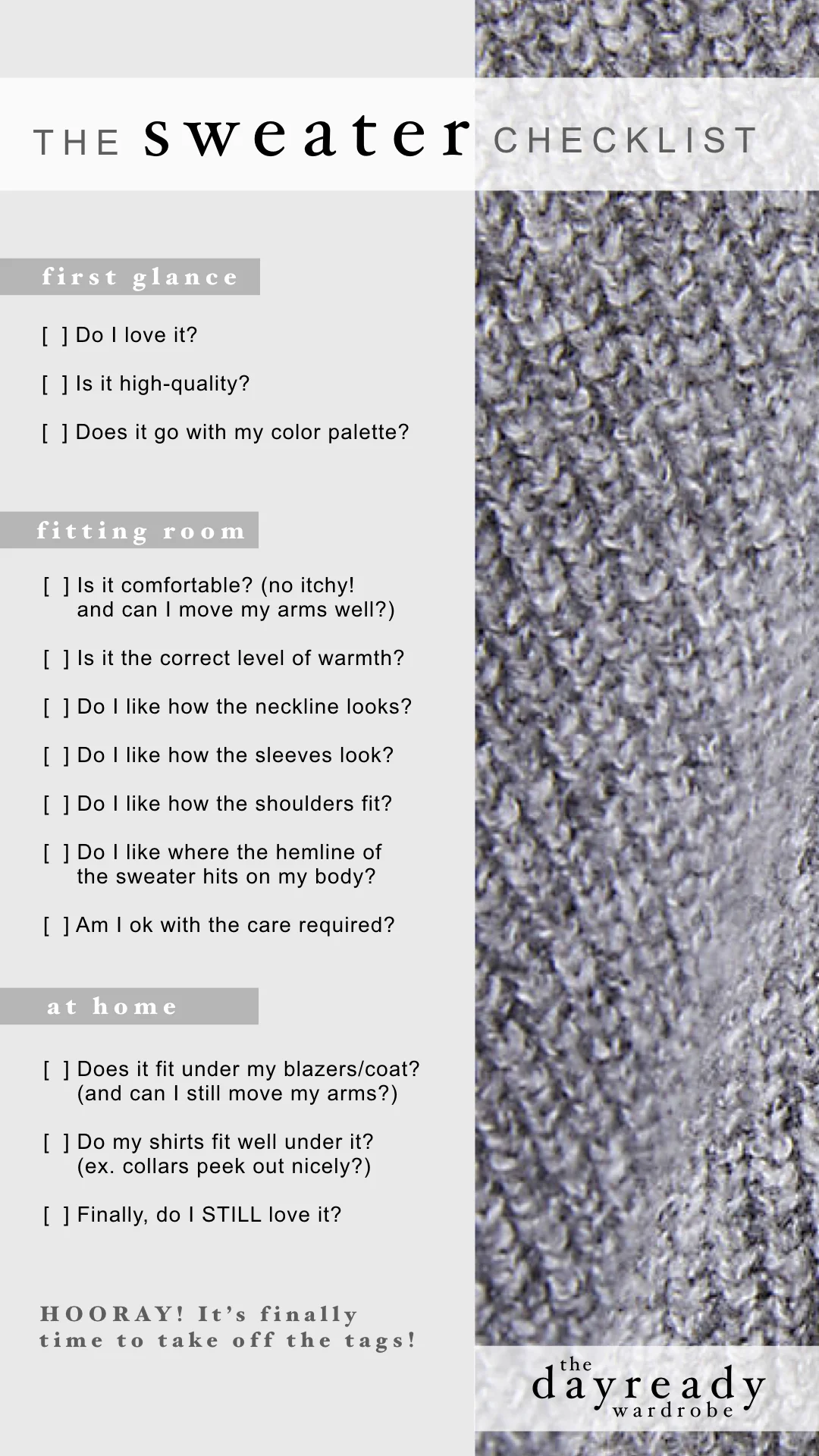 You can also read more here about why and how having a checklist can help you pinpoint the items that are truly worth of your wardrobe.